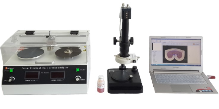 一體式端子截面分析儀是本公司針對線束行業(yè)品質(zhì)檢驗(yàn)而專門研發(fā)的一款精密檢測分析設(shè)備,整套系統(tǒng)由端子切割設(shè)備、研磨設(shè)備、腐蝕清洗斷面圖像采集系統(tǒng)、線束端子圖片測量分析系統(tǒng)等單元組成,采用人體力學(xué)設(shè)計(jì),模塊化組合,讓操作更方便、快捷。全套檢測系統(tǒng)可在5分鐘內(nèi)完成一個端子的處理分析,極大地提高了端子斷面品質(zhì)檢驗(yàn)的速度。簡易的操作、高品質(zhì)的圖像采集系統(tǒng)、精確的測量分析為您的生產(chǎn)保駕護(hù)航。高性能顯微觀測儀和專用軟件可簡單正確地測量長度﹑計(jì)算面積。